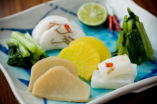 | 良質の国産大根を漬け込み、米ぬかで熟成、乳酸発酵させました。米ぬかの風味とほどよい酸味、昔なつかしい歯切れと味をお楽しみください。かつお節、しょうゆ、ゴマ、すだちなどをかけますと、また違った味が楽しめます。おにぎり、雑炊、焼酎のおともに。 |